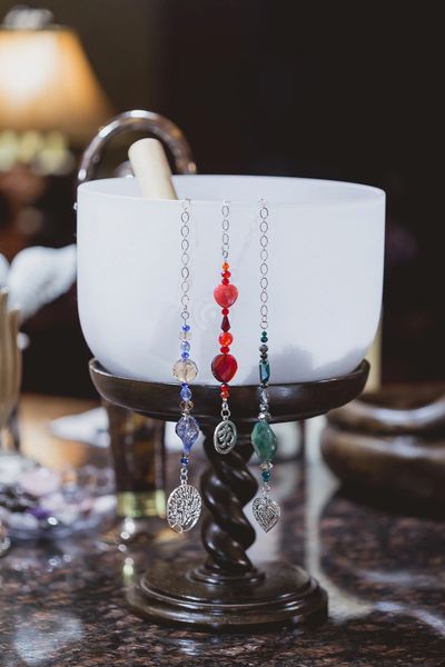 "I don't normally like to hang things in my car, but when I walked out today to my car, already heavy in the middle of tasks for the day, and saw this gift hanging from my car's rearview mirror. I had asked to have it blessed in the workshop, and I was transported back into the workshop energy and drove out into my day in tears of gratitude, filled with light and love."